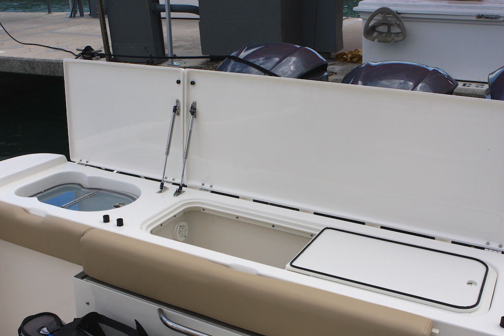 A large livewell and spacious fish box are stealthily hidden in the transom by a set of clever lids. Photo by Gary Reich