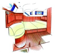 Interior layout options can be customized to satisfy most owners' requirements offering a choice of 6/8 berths in four cabins or 4 berths in two cabins. The owner can also select the choice of galley layout with either a "linear" galley in the saloon, favored by many charter companies, or the more traditional "L" shaped offset galley. A light and airy interior is achieved by fitting eight deck hatches as well as opening ports providing excellent ventilation. Hand built interior furnishings in either teak or cherry create a warm and welcoming atmosphere for this comfortable performance cruising yacht.