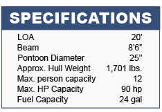 • Aluminum trim w/raised rubrail, cleats welded to pontoons