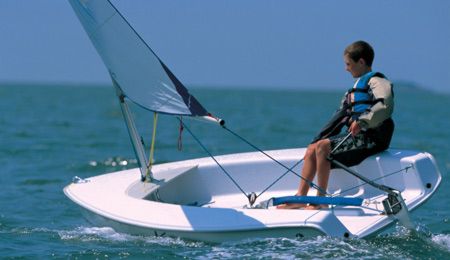 Sailing should be fun for everyone on board. This is one reason the 140 is equipped with a jib. Rather than just sit there, your passenger can be part of sailing the boat and learn by doing rather than watching. The telltales on the jib show the flow of wind on the sail, helping to guide in steering and trimming. The jib also functions to help generate airflow across the mainsail, enhancing performance. Boats with jibs generally sail better towards the wind than boats without jibs. This means your 140 will naturally "point" better than a boat with a single sail. The jib sheets are controlled through pivoting "cam" cleats making trimming easy from any position, even the helm.